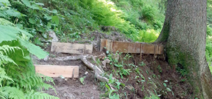 Zunächst wird der Weg von der Hütte zur Oberkaseralm hergerichtet. Es werden neue Stufen eingebaut und auch die seitliche Befestigung des Weges wird erneuert.