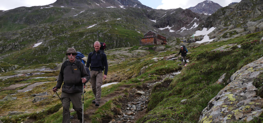 Der Arbeitseinsatz ist beendet. Gegen 09:00 Uhr gehen Ralf, Martin, Klaus-Dieter und ich in Richtung Parkplatz. Der Transfer zum Tal soll gegen 13:00 Uhr erfolgen. Ernst und Livia blieben noch auf der Hütte. Sie wollen auf den „Roten Knopf“ steigen. Mit dabei ist eine Kollegin der Sektion Wuppertal, die aber an unserem Arbeitseinsatz nicht beteiligt war. Wir müssen bis 14:30 Uhr warten, bis wir abgeholt werden. In unserem Hotel für die Nacht kommen wir daher erst gegen 19:00 Uhr an.