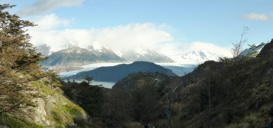 Bevor wir nach Puerto Natales wechselten, machten wir noch eine „kurze“ Wanderung, natürlich wieder „patagonisch flach“, zu einem Aussichtspunkt, der einen beeindruckenden Blick auf den Gletscher Grey, den gleichnamigen See und die schnee- und eisbedeckten Berge im Hintergrund bot. Ein kalter Wind blies uns um die Nase. Hier spürte man die Nähe zum südpatagonischen Eisfeld, das zusammen mit dem nordpatagonischen eine Fläche von 22.000 km2 bildet und nach der Antarktis und Grönland das drittgrößte zusammenhängende Eisfeld der Welt bildet.
