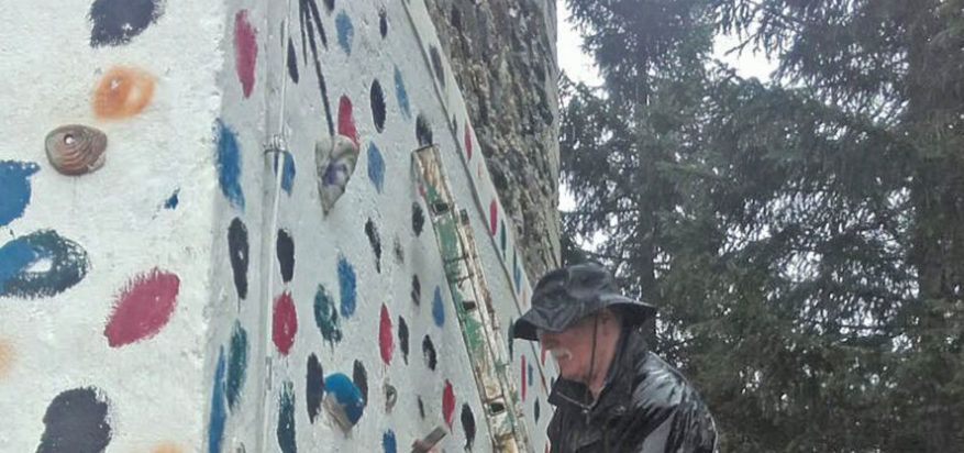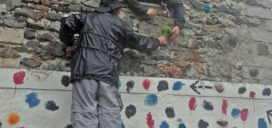 Es regnet noch immer. Wir überlegen, was wir heute erledigen können. Am Turm sollen die Griffe abgebaut werden, da dort keine ständige Nachschau erfolgt, ob alles in Ordnung ist. Wie üblich ist der Arbeitsbeginn wieder 09:00 Uhr. So einfach lassen sich die Griffe aber nicht entfernen. Sie sind angeschraubt und angeklebt. Beim Abschlagen entstehen größere Löcher am Turm, denn Putz und Steine sind porös.